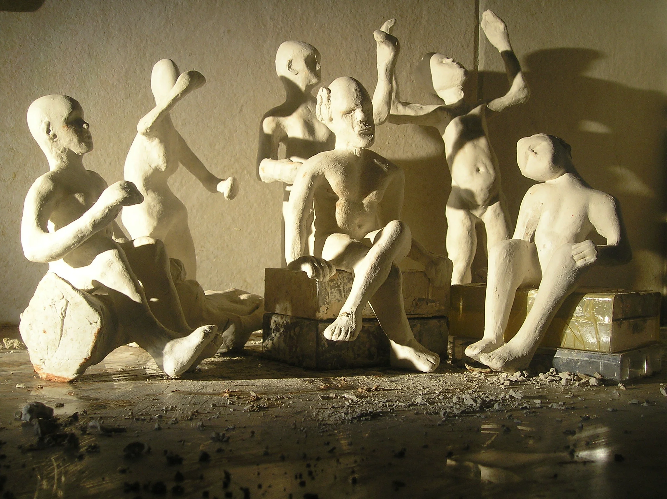 Waiting, Acrylic on canvas and silver figurine, 160 x 210cm, 2005